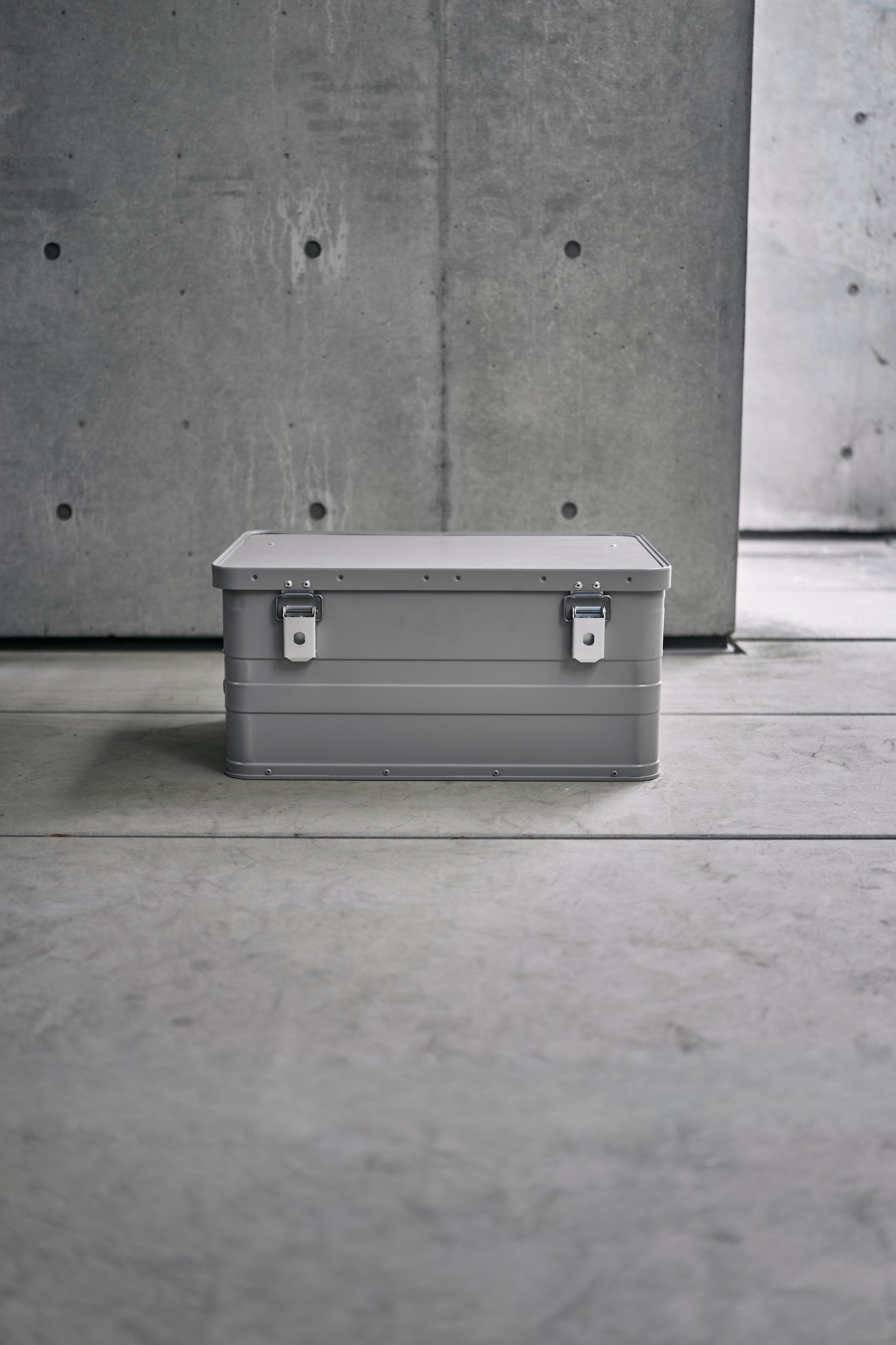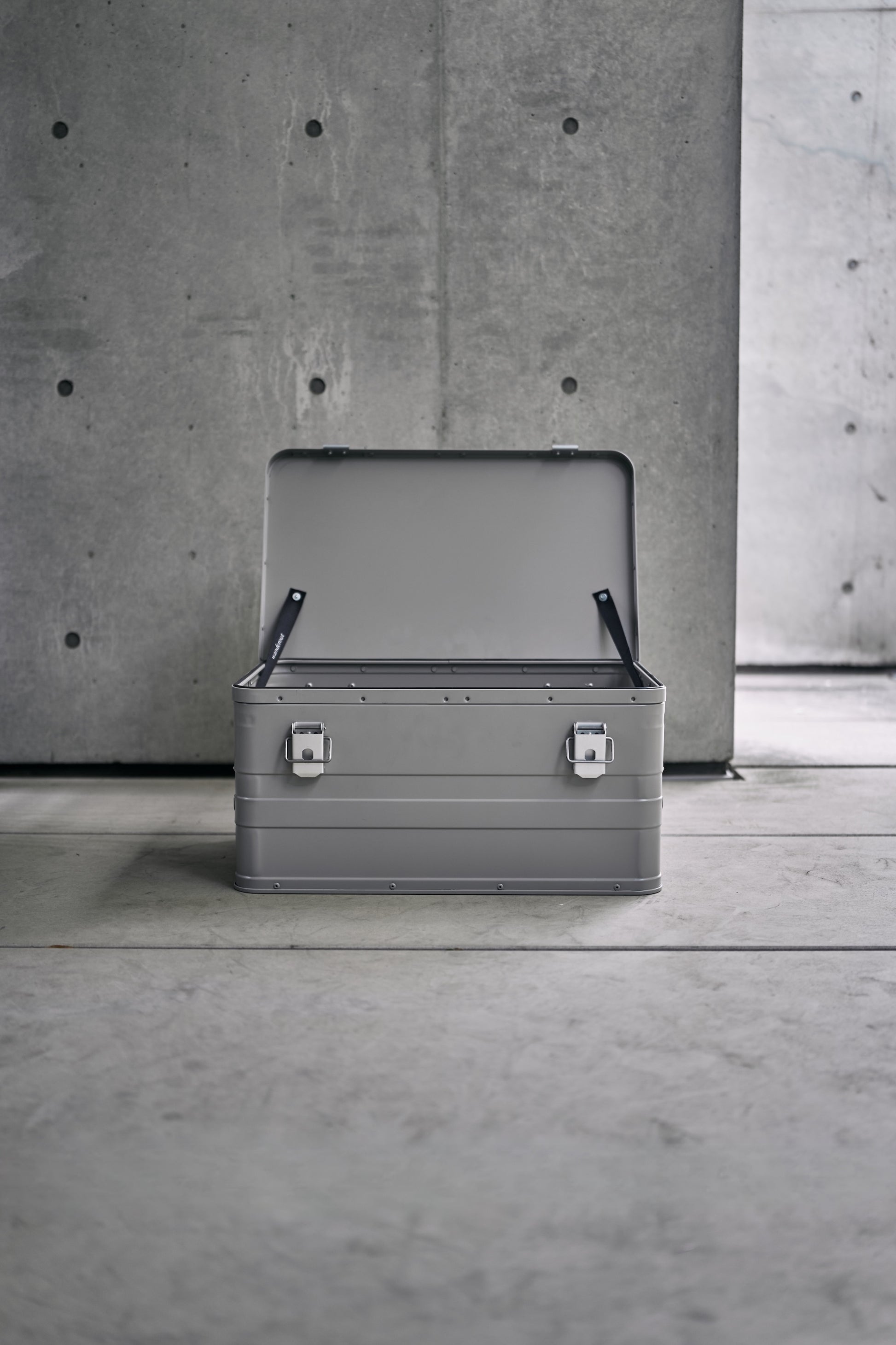 This is a universal and versatile box that was ordered from a factory in Europe that continues to make classic aluminum containers with a design that has not changed since ancient times. Developed by Wanderout and Pacific Furniture Service. While maintaining its classic appearance, it has been refined to the utmost to achieve a high sense of rigidity. The combination with Universal Stand looks very beautiful. It is a design that can be loved for a long time, becoming more beautiful as it travels and gets scratched.