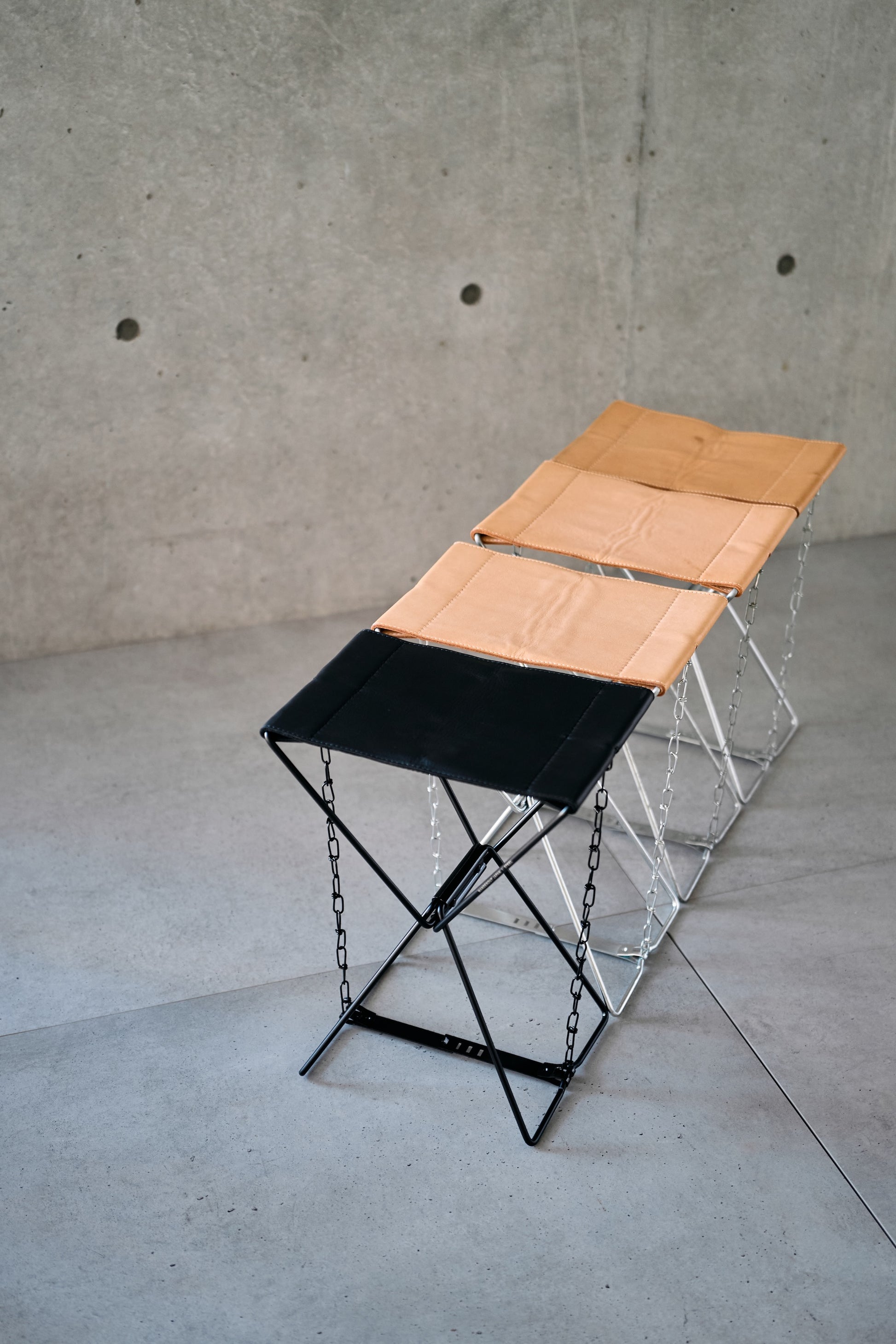 This special model features a stool custom-ordered from a factory that has continued producing the same classic design for generations, now finished in vegetable-tanned leather by skilled Japanese artisans. To ensure long-term durability, a reinforcing material is carefully inserted between two layers of leather. Each piece is meticulously completed by hand.