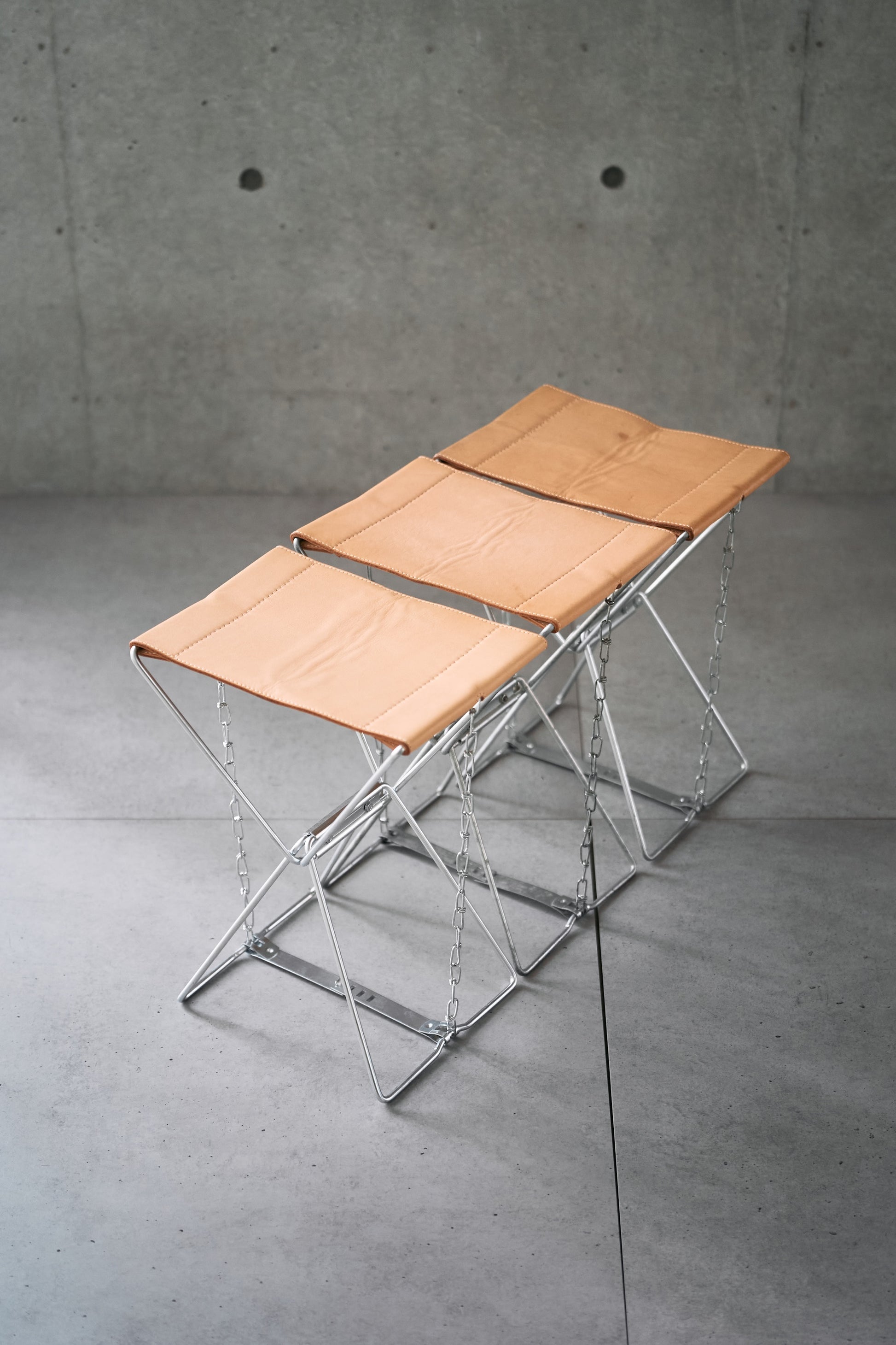 This special model features a stool custom-ordered from a factory that has continued producing the same classic design for generations, now finished in vegetable-tanned leather by skilled Japanese artisans. To ensure long-term durability, a reinforcing material is carefully inserted between two layers of leather. Each piece is meticulously completed by hand.