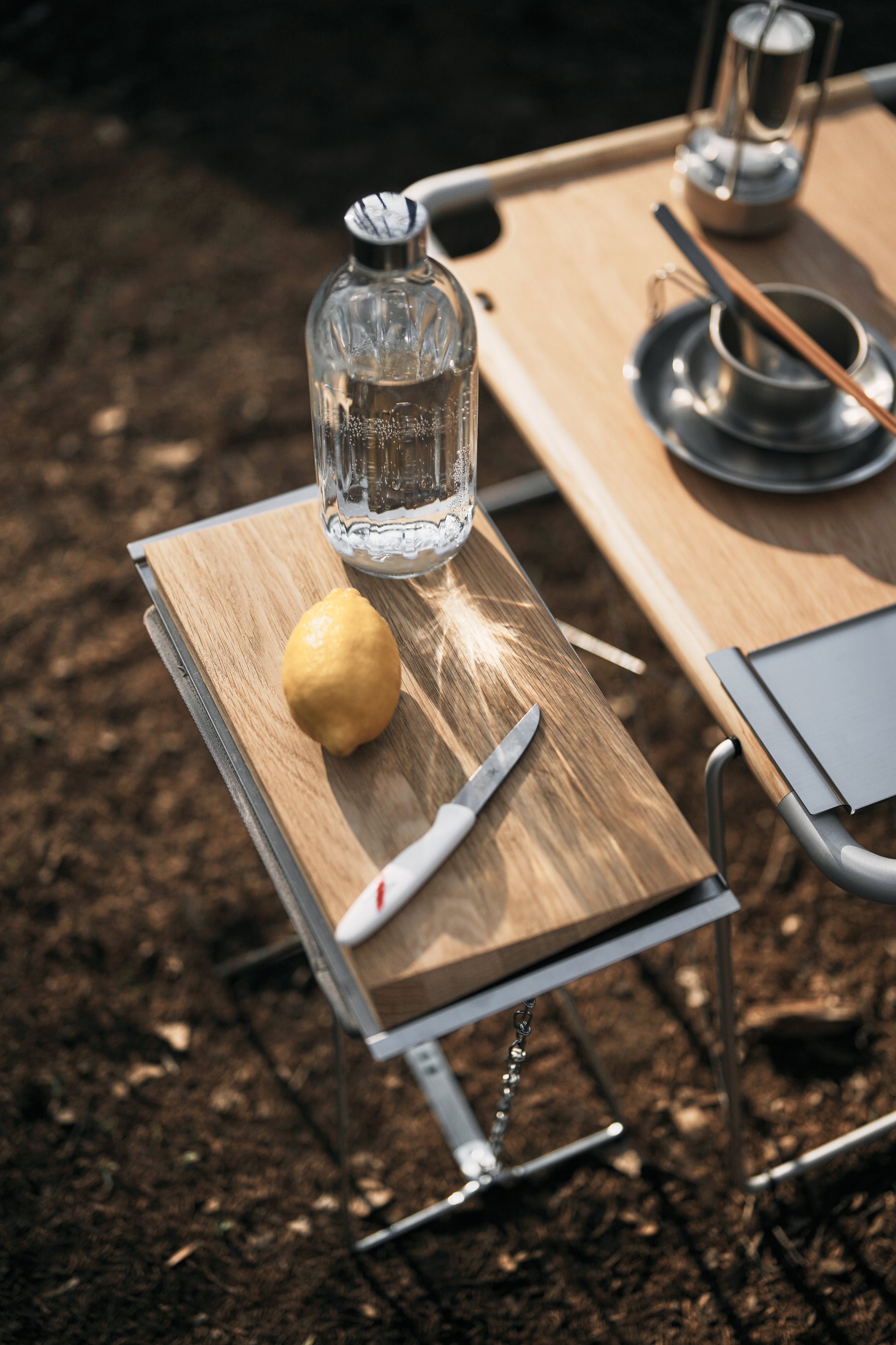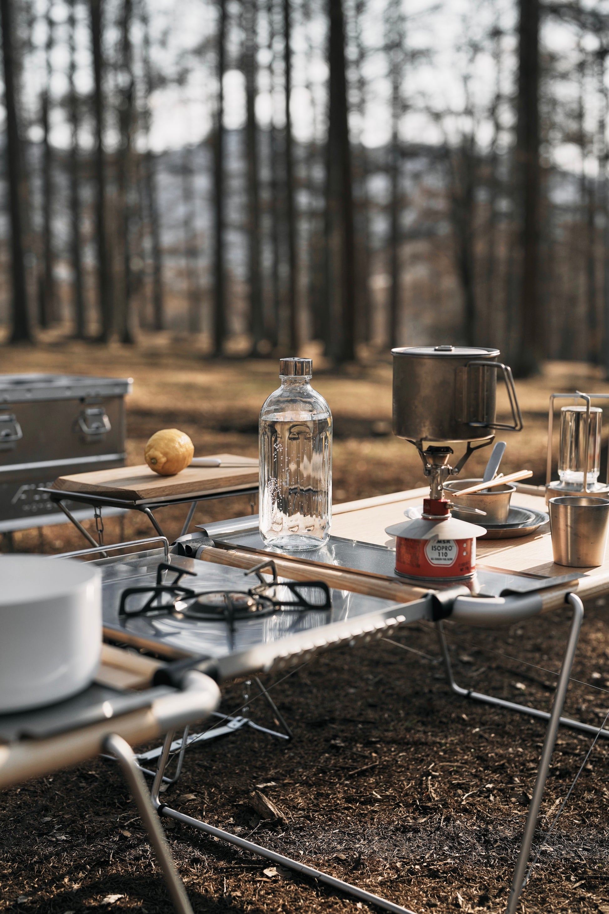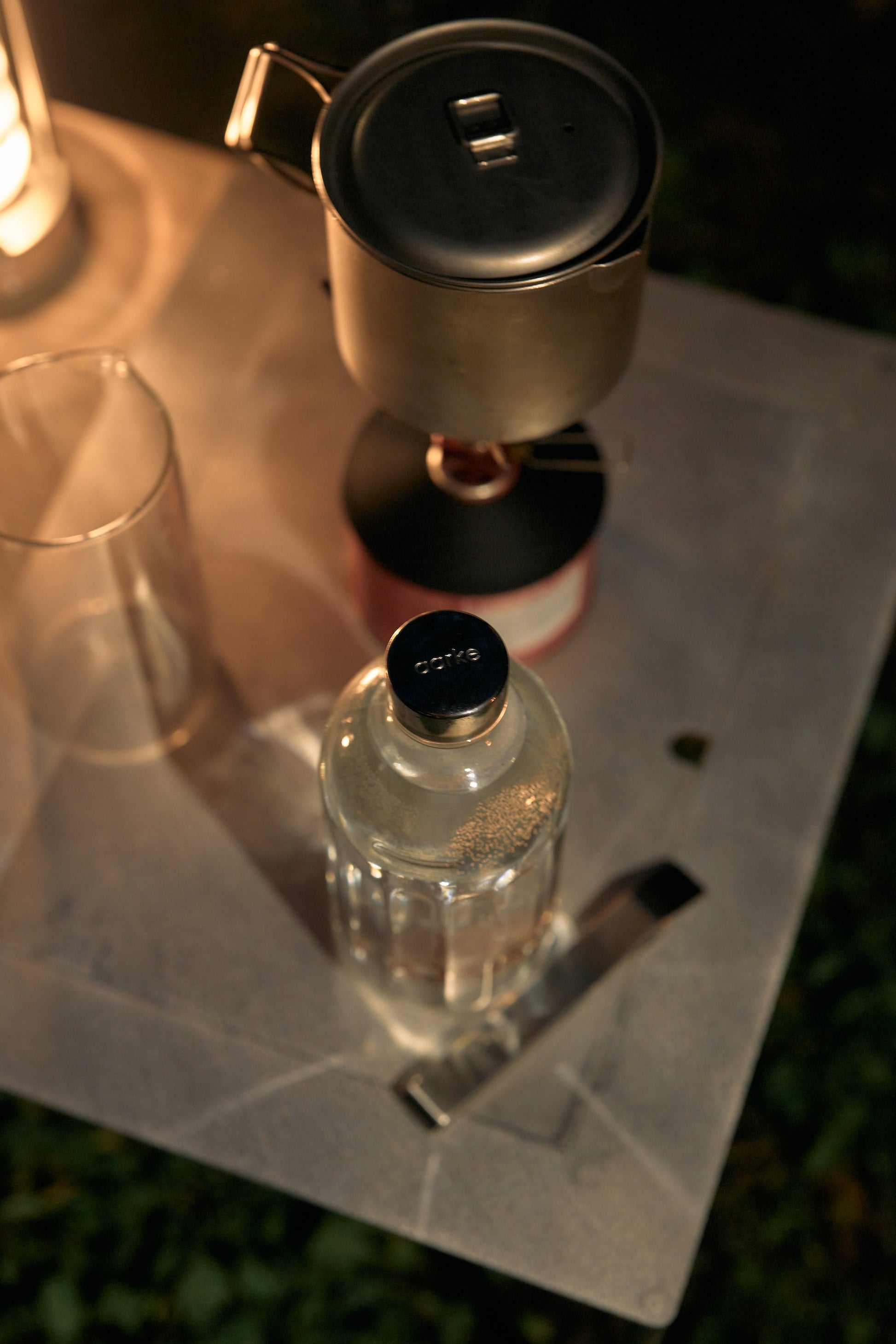 厚みのあるガラスと、ステンレスのキャップを採用し耐久性も抜群。機密性も高く、1日経過した炭酸水でも十分な炭酸を感じることができます。気になる重さは690gほどありますが、オートキャンプでは全ての荷物を軽くする必要がないため、バランスを見て気分を優先し楽しみたいところ。炭酸水はもちろん、お気に入りのドリンクやお酒を入れて持ち運ぶことも可能です。自然とテーブルトップに置いておきたくなる、洗練されたデザインです。