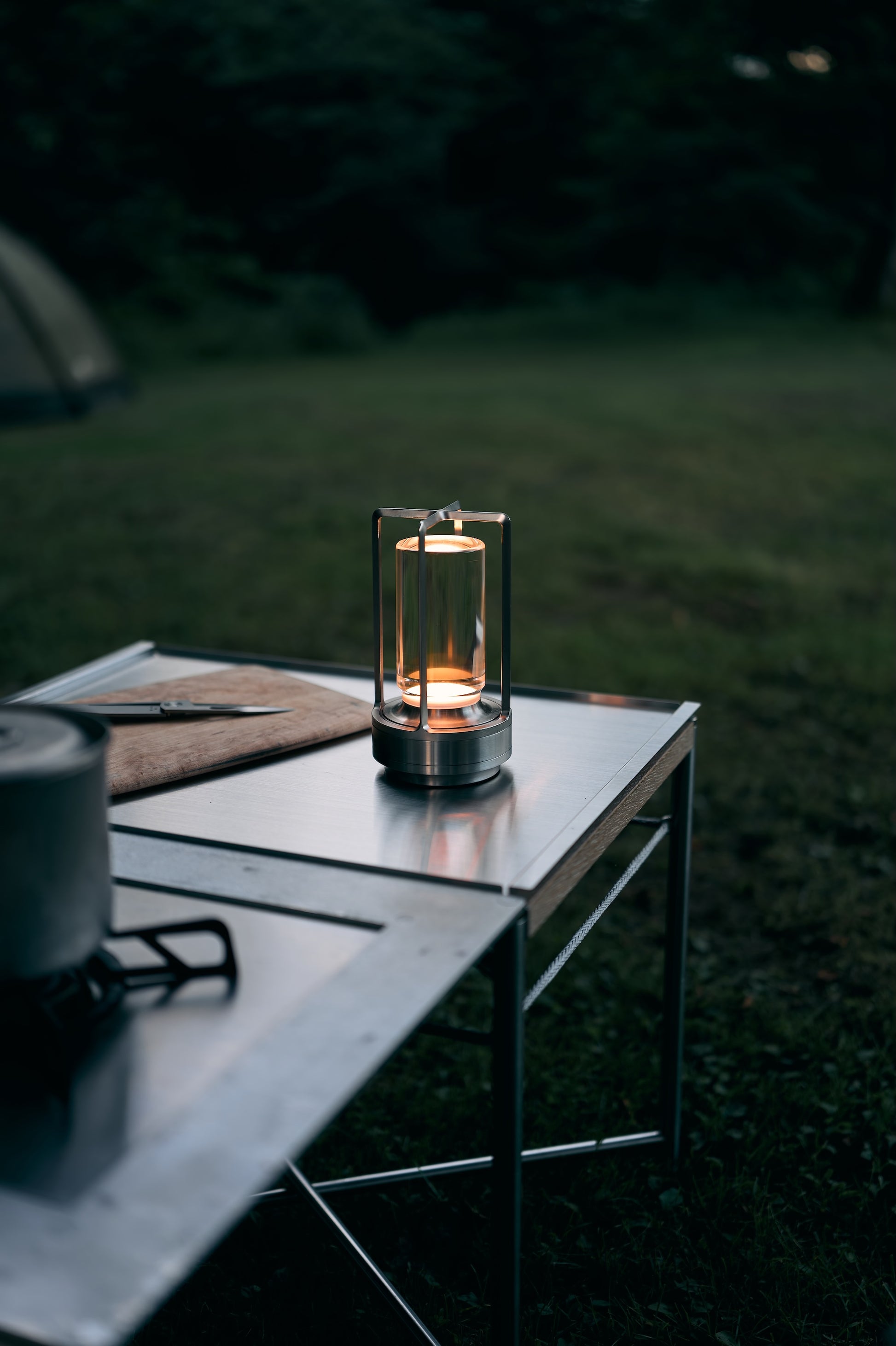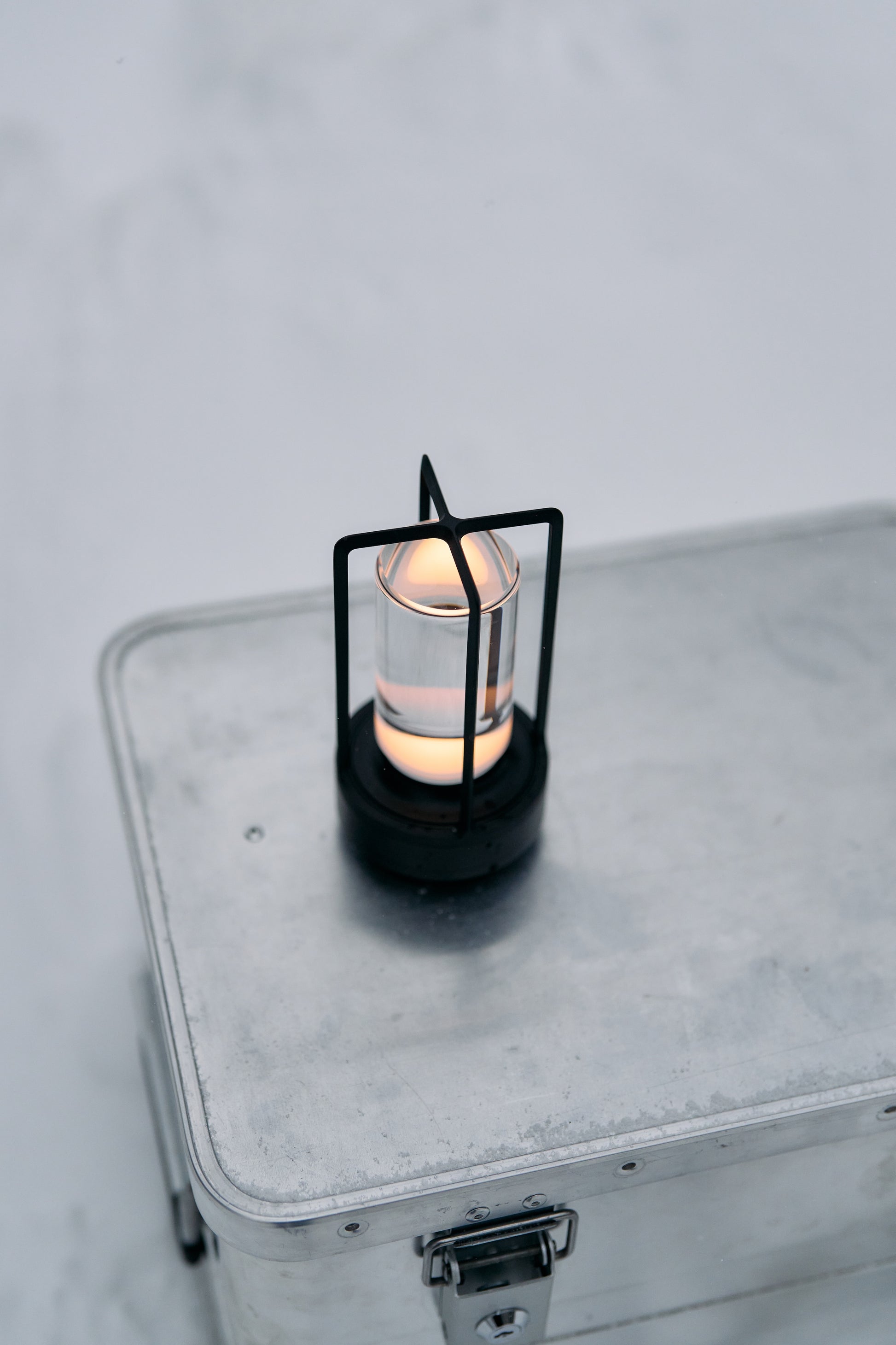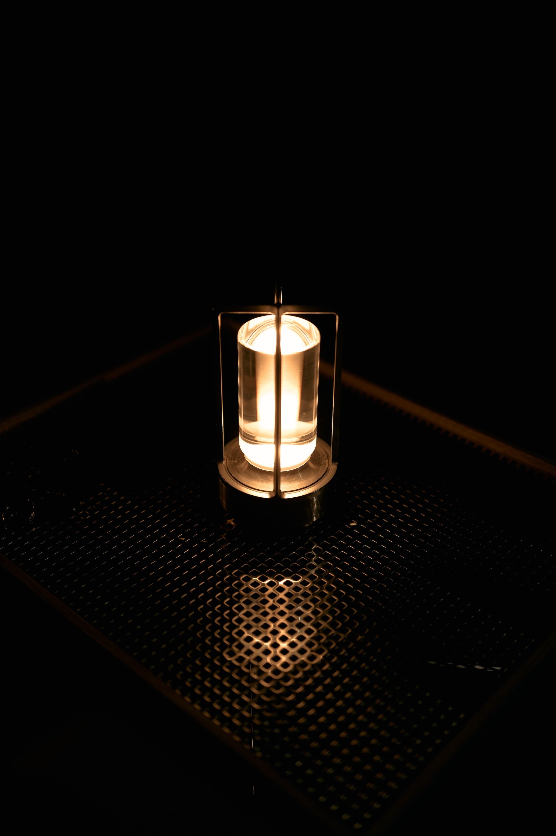 金属削り出しのベースに、磨き上げられたソリッドなクリスタルガラス、そして亜鉛ダイキャストのケージと、圧倒的な質感の高さを持つ、現代におけるLEDランタンの最上品です。