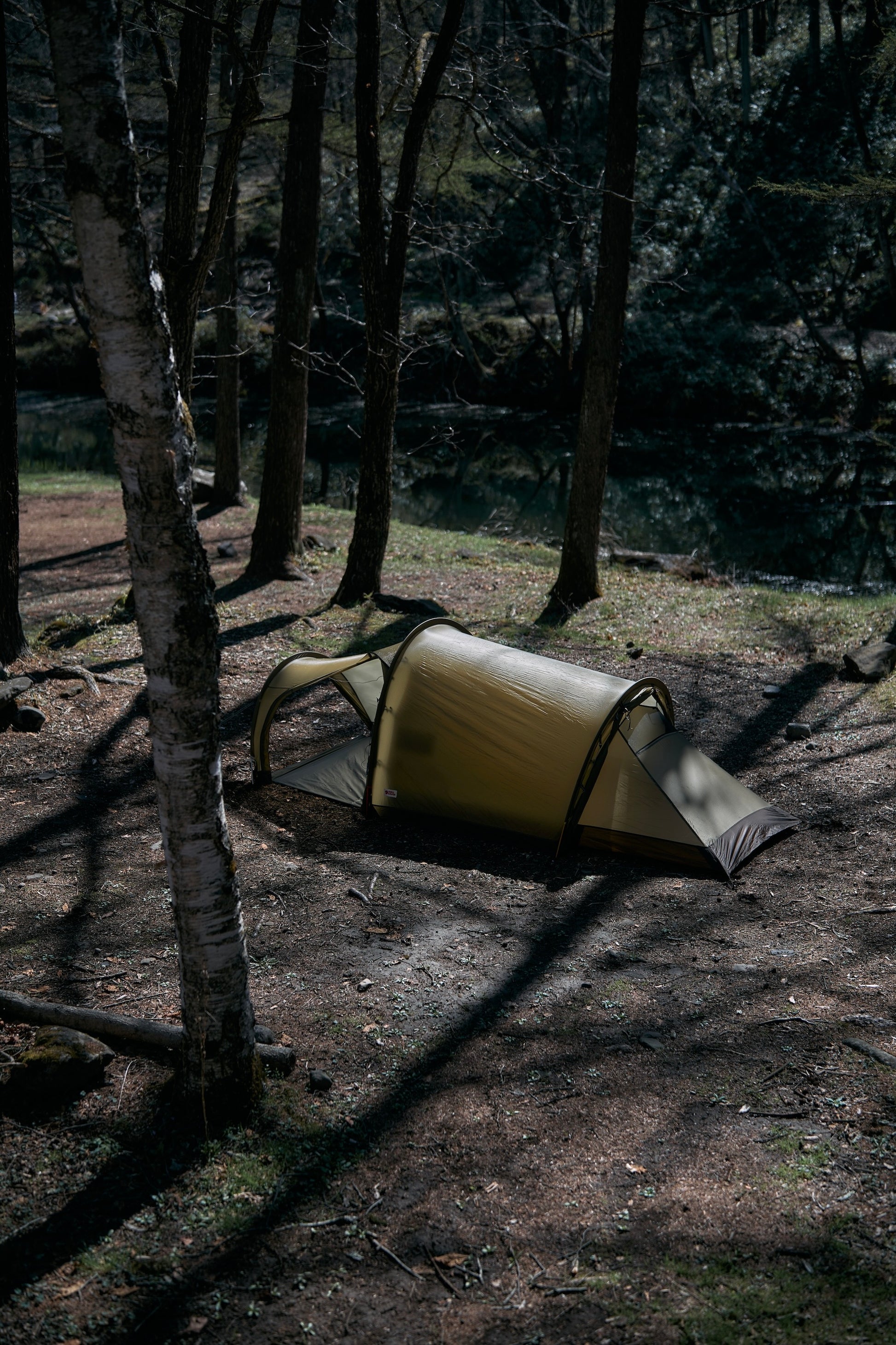 スウェーデンのフェールラーベン社が製造する、1〜2人用のミニマルなトンネル型テント。