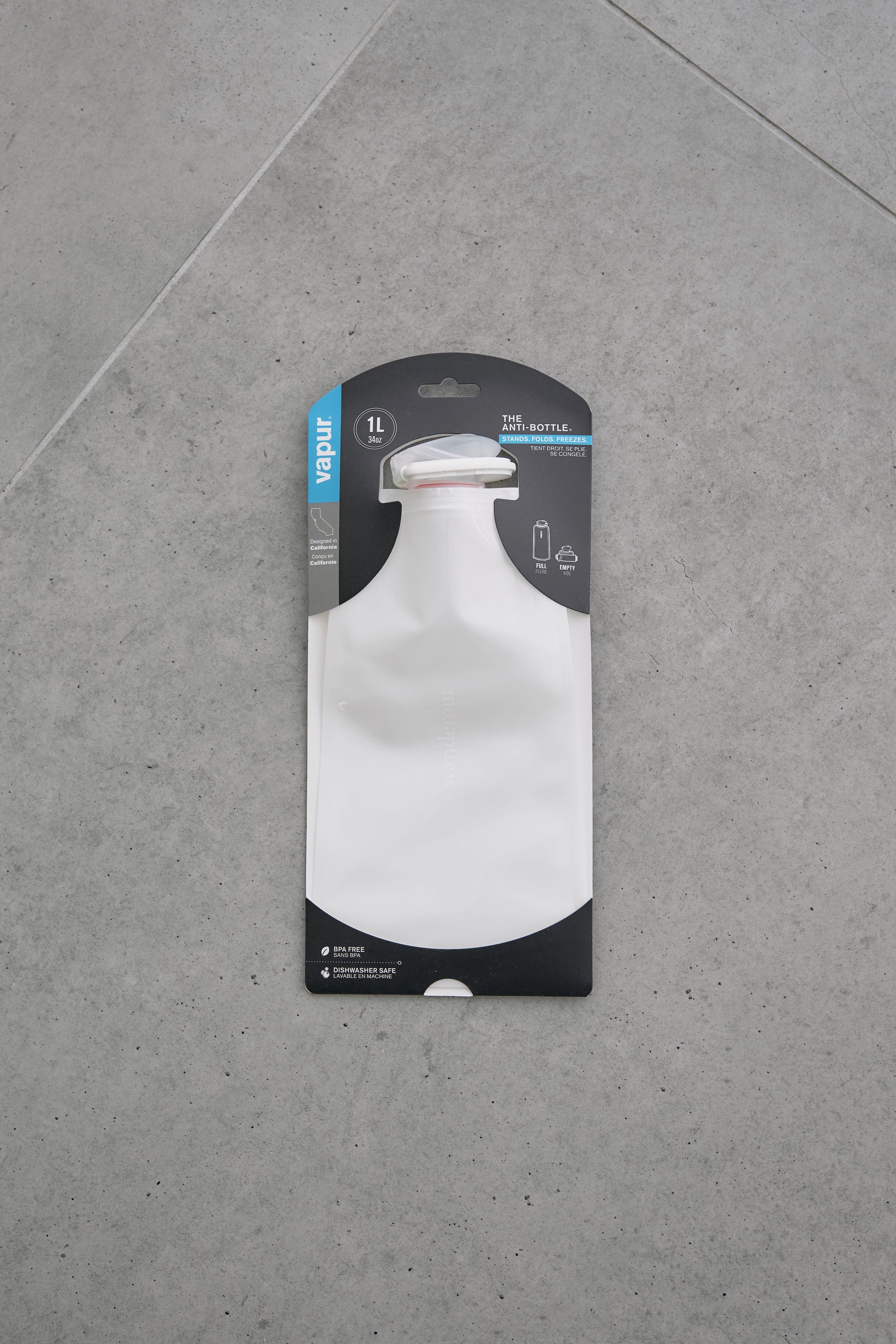 カリフォルニアのヴェイパーに依頼し、ロゴを配したホワイトアウトのボトルを制作しました。無色で洗練された佇まいは景観と調和し、アウトドアはもちろん日常使いにも最適です。wanderoutのみ取り扱いの特別なモデルになります。